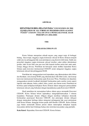 Sekar Rachmawati , - (2025) KEPATUHAN KOREA SELATAN PADA “CONVENTION ON THE ELIMINATION OF ALL FORMS OF DISCRIMINATION AGAINST WOMEN” (CEDAW) DALAM UPAYA PENEGAKAN HAK ASASI PEREMPUAN (2016-2020). FAKULTAS ILMU SOSIAL DAN ILMU POLITIK, UNIVERSITAS LAMPUNG.
