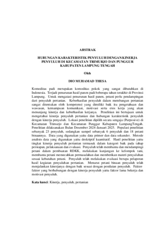 Dio Muhamad , Thesa (2025) HUBUNGAN KARAKTERISTIK PENYULUH DENGAN KINERJA PENYULUH DI KECAMATAN TRIMURJO DAN PUNGGUR KABUPATEN LAMPUNG TENGAH. FAKULTAS PERTANIAN, UNIVERSITAS LAMPUNG.