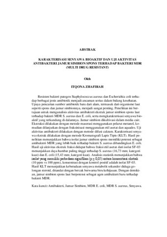 ITQONA , ZHAFIRAH (2025) KARAKTERISASI SENYAWA BIOAKTIF DAN UJI AKTIVITAS ANTIBAKTERI EKSTRAK JAMUR SIMBION SPONS TERHADAP BAKTERI MDR (Multi Drug Resistant). FAKULTAS PERTANIAN, UNIVERSITAS LAMPUNG.
