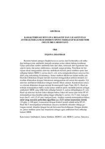 KARAKTERISASI SENYAWA BIOAKTIF DAN UJI AKTIVITAS ANTIBAKTERI EKSTRAK JAMUR SIMBION SPONS TERHADAP BAKTERI MDR (Multi Drug Resistant)