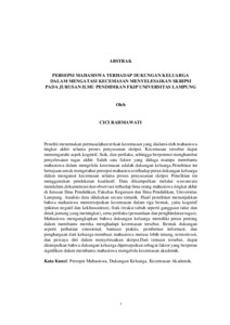 Cici , Rahmawati (2025) PERSEPSI MAHASISWA TERHADAP DUKUNGAN KELUARGA DALAM MENGATASI KECEMASAN MENYELESAIKAN SKRIPSI PADA JURUSAN ILMU PENDIDIKAN FKIP UNIVERSITAS LAMPUNG. FAKULTAS KEGURUAN DAN ILMU PENDIDIKAN, UNIVERSITAS LAMPUNG .