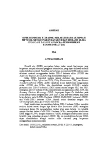 Dimetil eter (DME) merupakan bahan bakar ramah lingkungan yang berpotensi menjadi alternatif pengganti bahan bakar, yang dapat disintesis melalui reaksi dehidrasi metanol. Penelitian ini bertujuan menyintesis DME melalui reaksi dehidrasi metanol menggunakan katalis ZSM-5 berbasis silika LUDOX dan Sugarcane Bagasse Ash (SCBA) yang dimodifikasi logam Co. Silika SCBA diperoleh melalui proses ekstraksi dan dikarakterisasi menggunakan X-Ray Diffraction (XRD), X-Ray Fluorescence (XRF), dan Fourier Transform Infrared (FTIR). ZSM-5 disintesis secara hidrotermal menggunakan silika LUDOX dan SCBA, lalu dimodifikasi menjadi H-ZSM-5 melalui pertukaran ion. ZSM-5 berbasis LUDOX dikarakterisasi dengan XRD dan XRF, sedangkan ZSM-5 berbasis SCBA dikarakterisasi menggunakan XRD, XRF, dan Scanning Electron Microscopy (SEM). Impregnasi logam Co dilakukan pada kedua katalis untuk menghasilkan Co/H-ZSM-5, dan aktivitas katalitik diuji pada ketiga katalis, yaitu H-ZSM-5 berbasis LUDOX, Co/H-ZSM-5 berbasis LUDOX, dan Co/H-ZSM-5 berbasis SCBA. Produk reaksi dianalisis dengan Gas Chromatography-Mass Spectrometry (GC-MS). Hasil karakterisasi menunjukkan bahwa ZSM-5 berbasis SCBA memiliki struktur kristal sesuai dengan tipe Mobile Five Instructure (MFI) sedangkan impregnasi logam Co meningkatkan jumlah situs asam katalis. Uji katalitik memperlihatkan bahwa Co/H-ZSM-5 berbasis SCBA menunjukkan selektivitas DME tinggi (95,59%) dengan rendemen 54,60%, sekaligus membuktikan kinerja katalitik yang sebanding dengan LUDOX. Hal ini membuktikan bahwa SCBA dapat dimanfaatkan sebagai sumber silika alternatif yang berpotensi menggantikan bahan komersial. Kata kunci: Co/H-ZSM-5, dehidrasi metanol, DME, H-ZSM-5, impregnasi, kobalt, silika SCBA