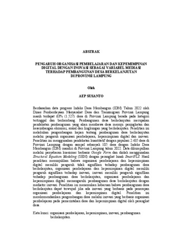 File PDF (PENGARUH ORGANISASI PEMBELAJARAN DAN KEPEMIMPINAN DIGITAL DENGAN INOVASI SEBAGAI VARIABEL MEDIASI TERHADAP PEMBANGUNAN DESA BERKELANJUTAN DI PROVINSI LAMPUNG)