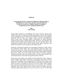 Aulia, Arnelita (2025) ANALISIS PENEGAKAN HUKUM TERHADAP TINDAK PIDANA PEMERASAN YANG DILAKUKAN OLEH OKNUM WARTAWAN DENGAN MODUS PELIPUTAN BERITA (Studi Putusan Nomor: 40/Pid.Sus/2024/PN Met). FAKULTAS HUKUM, UNIVERSITAS LAMPUNG .
