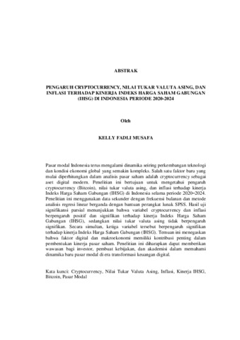 Kelly , Fadli Musafa (2025) PENGARUH CRYPTOCURRENCY, NILAI TUKAR VALUTA ASING, DAN INFLASI TERHADAP KINERJA INDEKS HARGA SAHAM GABUNGAN (IHSG) DI INDONESIA PERIODE 2020-2024. FAKULTAS ILMU SOSIAL DAN ILMU POLITIK, UNIVERSITAS LAMPUNG.