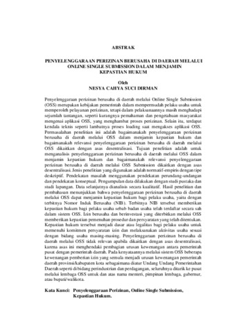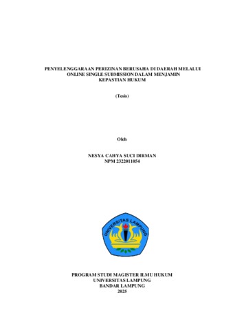 Nesya, Cahya Suci Dirman (2025) PENYELENGGARAAN PERIZINAN BERUSAHA DI DAERAH MELALUI ONLINE SINGLE SUBMISSION DALAM MENJAMIN KEPASTIAN HUKUM. Masters thesis, UNIVERSITAS LAMPUNG.