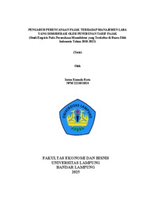 INTAN , Kumala Ratu (2025) PENGARUH PERENCANAAN PAJAK TERHADAP MANAJEMEN LABA YANG DIMODERASI OLEH PENURUNAN TARIF PAJAK (Studi Empiris Pada Perusahaan Manufaktur yang Terdaftar di Bursa Efek Indonesia Tahun 2018-2023). Masters thesis, UNIVERSITAS LAMPUNG.
