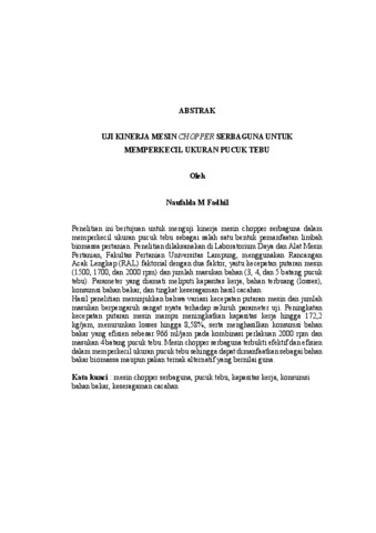 NAUFALDA , M FADHIL (2025) UJI KINERJA MESIN CHOPPER SERBAGUNA UNTUK MEMPERKECIL UKURAN PUCUK TEBU. FAKULTAS PERTANIAN, UNIVERSITAS LAMPUNG.