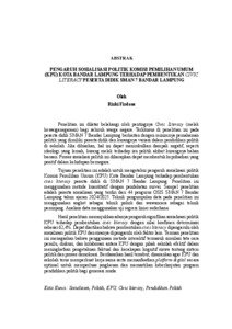 RIZKI , FIRDAUS (2025) PENGARUH SOSIALISASI POLITIK KOMISI PEMILIHAN UMUM (KPU) KOTA BANDAR LAMPUNG TERHADAP PEMBENTUKAN CIVIC LITERACY PESERTA DIDIK SMAN 7 BANDAR LAMPUNG. FAKULTAS KEGURUAN DAN ILMU PENDIDIKAN, UNIVERSITAS LAMPUNG.