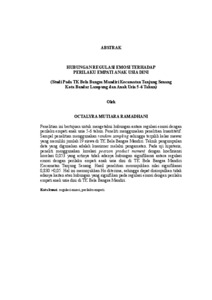 HUBUNGAN REGULASI EMOSI TERHADAP PERILAKU EMPATI ANAK USIA DINI (Studi Pada TK Bela Bangsa Mandiri Kecamatan Tanjung Senang Kota Bandar Lampung dan Anak Usia 5-6 Tahun)