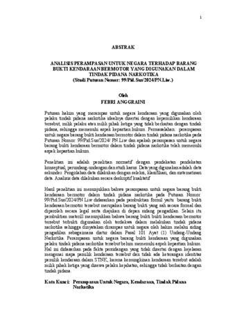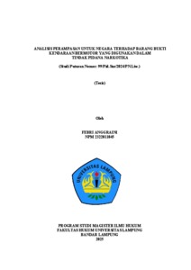 FEBRI , ANGGRAINI (2025) ANALISIS PERAMPASAN UNTUK NEGARA TERHADAP BARANG BUKTI KENDARAAN BERMOTOR YANG DIGUNAKAN DALAM TINDAK PIDANA NARKOTIKA (Studi Putusan Nomor: 99/Pid.Sus/2024/PN.Liw.). Masters thesis, UNIVERSITAS LAMPUNG.