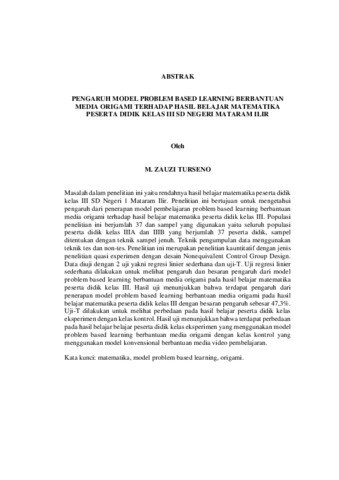 M. ZAUZI TURSENO, 250758428064 (2025) PENGARUH MODEL PROBLEM BASED LEARNING BERBANTUAN MEDIA ORIGAMI TERHADAP HASIL BELAJAR MATEMATIKA PESERTA DIDIK KELAS III SD NEGERI MATARAM ILIR. FAKULTAS KEGURUAN DAN ILMU PENDIDIKAN, UNIVERSITAS LAMPUNG.