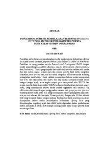 Penelitian ini bertujuan mengembangkan media pembelajaran berbantuan iSpring Suite pada materi Sistem Komputer Peserta Didik kelas VII SMPN 19 Pesawaran. Penelitian ini menggunakan metode Research and Development (R&D) dengan model pengembangan ADDIE (Analisys, Design, Development, Implementation, dan Evaluation). Teknik pengumpulan data dilakukan melalui validasi ahli media dan ahli materi, angket respon guru dan respon peserta didik untuk mengukur kelayakan, serta pre-test dan post-test untuk mengukur efektivitas media terhadap peningkatan hasil belajar. Hasil validasi menunjukan bahwa media memperoleh skor 84% dari ahli media dan 80,6% dari ahli materi keduanya berada dalam kategori sangat layak, serta angket respon guru memperoleh skor 89,32% dan respon peserta didik dengan skor 90,03% keduanya berada dalam kategori sangat layak, yang menunjukan bahwa media mudah digunakan dan menarik. Uji efektivitas dilakukan dengan menggunakan desain one group pre-test post-test terhadap peserta didik kelas VII, yang menunjukan adanya peningkatan nilai ratarata pre-test sebesar 43,4 menjadi 78 saat post-test, dengan nilai N-Gain sebesar 0,60 yang termasuk dalam kategori sedang. Berdasarkan hasil penelitian ini, dapat disimpulkan bahwa media pembelajaran berbantuan iSpring Suite yang dikembangkan tergolong layak dan efektif untuk digunakan dalam pembelajaran sistem komputer di SMP, serta mampu meningkatkan hasil belajar peserta didik secara signifikan. Kata kunci: media pembelajaran, iSpring Suite, sistem komputer, hasil belajar