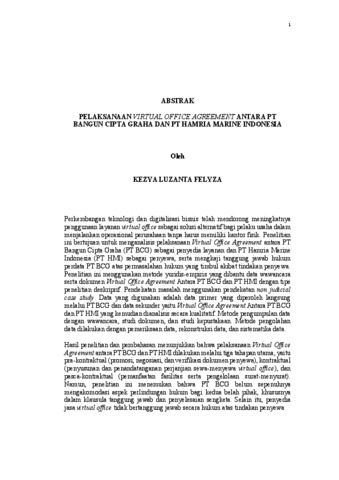 KEZYA , LUZANTA FELYZA (2025) PELAKSANAAN VIRTUAL OFFICE AGREEMENT ANTARA PT BANGUN CIPTA GRAHA DAN PT HAMRIA MARINE INDONESIA. FAKULTAS HUKUM , UNIVERSITAS LAMPUNG.