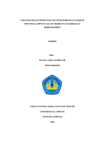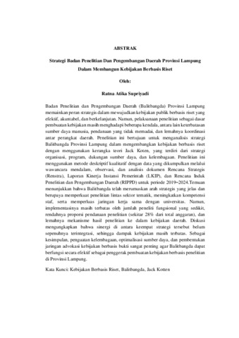 Ratna Atika, Supriyadi (2025) Strategi Badan Penelitian dan Pengembangan Daerah Provinsi Lampung dalam Membangun Kebijakan Berbasis Riset. Fakultas Ilmu Sosial dan Ilmu Politik, Universitas Lampung.