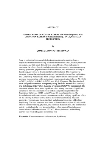 Qonita, Leonyputri Stiawan (2025) FORMULASI EKSTRAK KOPI (Coffea canephora) DAN EKSTRAK KAYU MANIS (Cinnamomum) DALAM PEMBUATAN SABUN CAIR. FAKULTAS PERTANIAN, UNIVERSITAS LAMPUNG.