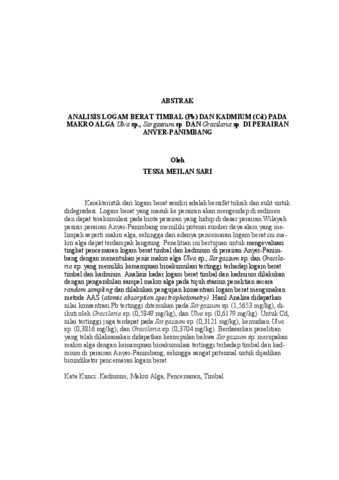 Tessa, Meilan Sari (2025) Analisis Logam Berat Timbal (Pb) dan Kadmium (Cd) pada Makro Alga Ulva sp., Sargassum sp. dan Gracilaria sp. di Perairan Anyer-Panimbang. FAKULTAS PERTANIAN, UNIVERSITAS LAMPUNG.