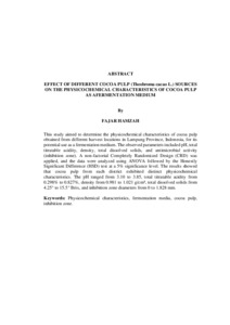 FAJAR , HAMZAH (2025) PENGARUH ASAL PULPA KAKAO (Theobroma cacao L.) BERBEDA TERHADAP KARAKTERISTIK FISIKOKIMIA PULPA KAKAO SEBAGAI MEDIA FERMENTASI. FAKULTAS PERTANIAN, UNIVERSITAS LAMPUNG.