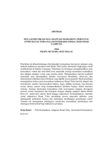 Penelitian ini dilatarbelakangi oleh dinamika komunikasi dan proses adaptasi yang dialami mahasiswa perantau etnis Batak Toba ketika memasuki lingkungan sosial multikultural di Bandar Lampung. Penelitian ini bertujuan mengidentifikasi pola komunikasi verbal dan nonverbal serta menelaah strategi akomodasi komunikasi dan tahapan adaptasi sosial yang mereka jalani. Menggunakan metode kualitatif deskriptif, data dikumpulkan melalui wawancara mendalam, observasi, dan dokumentasi terhadap enam informan yang dipilih secara purposif. Hasil penelitian menunjukkan bahwa pola komunikasi mahasiswa Batak Toba bersifat adaptif dan kontekstual; mereka menyesuaikan bahasa, logat, pilihan kosakata, dan intonasi sesuai situasi, namun tetap mempertahankan identitas budaya dalam interaksi tertentu. Strategi akomodasi komunikasi baik konvergensi maupun divergensi muncul secara situasional dan berkaitan dengan tahapan adaptasi dalam Model Kurva-U, mulai dari culture shock hingga adjustment. Kesimpulannya, interaksi sosial mahasiswa Batak Toba merupakan proses negosiasi identitas yang dipengaruhi perbedaan budaya dan kebutuhan membangun penerimaan sosial. Temuan ini menegaskan pentingnya sensitivitas komunikasi antarbudaya dan dukungan institusional bagi mahasiswa perantau. Kata Kunci : Pola Komunikasi, Adaptasi, Batak Toba, Akomodasi Komunikasi, Kurva-U This research is motivated by the communication dynamics and adaptation processes experienced by Toba Batak ethnic migrant students when entering the multicultural social environment in Bandar Lampung. This study aims to identify verbal and nonverbal communication patterns and examine communication accommodation strategies and the stages of social adaptation they undergo. Using descriptive qualitative methods, data were collected through in-depth interviews, observation, and documentation with six purposively selected informants. The results indicate that Toba Batak students' communication patterns are adaptive and contextual; they adjust their language, accent, vocabulary choice, and intonation according to the situation, while maintaining their cultural identity in certain interactions. Communication accommodation strategies—both convergence and divergence—emerge situationally and are related to the adaptation stages in the UCurve Model, ranging from culture shock to adjustment. In conclusion, the social interactions of Toba Batak students are a process of identity negotiation influenced by cultural differences and the need to build social acceptance. These findings emphasize the importance of intercultural communication sensitivity and institutional support for students from other regions. Keywords: Communication Patterns, Adaptation, Toba Batak, Communication Accommodation, U-Curve