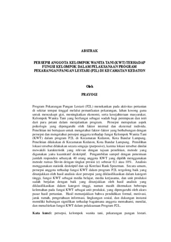 Prayogi, - (2025) PERSEPSI ANGGOTA KELOMPOK WANITA TANI (KWT) TERHADAP FUNGSI KELOMPOK DALAM PELAKSANAAN PROGRAM PEKARANGAN PANGAN LESTARI (P2L) DI KECAMATAN KEDATON. FAKULTAS PERTANIAN, UNIVERSITAS LAMPUNG.