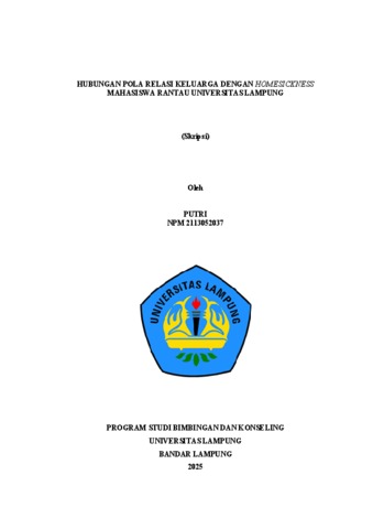 PUTRI, - (2025) HUBUNGAN POLA RELASI KELUARGA DENGAN HOMESICKNESS MAHASISWA RANTAU UNIVERSITAS LAMPUNG. FAKULTAS KEGURUAN DAN ILMU PENDIDIKAN, UNIVERSITAS LAMPUNG.