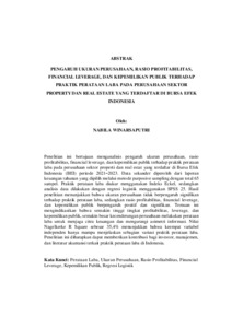 NABILA, WINARSAPUTRI (2025) PENGARUH UKURAN PERUSAHAAN, RASIO PROFITABILITAS, FINANCIAL LEVERAGE, DAN KEPEMILIKAN PUBLIK TERHADAP PRAKTIK PERATAAN LABA PADA PERUSAHAAN SEKTOR PROPERTY DAN REAL ESTATE YANG TERDAFTAR DI BURSA EFEK INDONESIA. EKONOMI DAN BISNIS, UNIVERSITAS LAMPUNG.