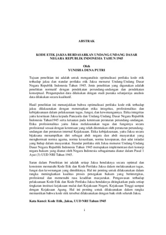 YUNISHA, DENA PUTRI (2025) KODE ETIK JAKSA BERDASARKAN UNDANG-UNDANG DASAR NEGARA REPUBLIK INDONESIA TAHUN 1945. Masters thesis, UNIVERSITAS LAMPUNG.