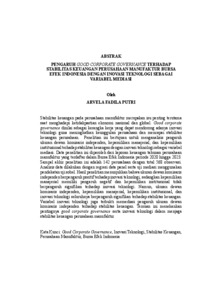Stabilitas keuangan pada perusahaan manufaktur merupakan isu penting terutama saat menghadapi ketidakpastian ekonomi nasional dan global. Good corporate governance dinilai sebagai kerangka kerja yang dapat mendorong adanya inovasi teknologi guna meningkatkan keunggulan perusahaan dan mencapai stabilitas keuangan perusahaan. Penelitian ini bertujuan untuk menganalisis pengaruh ukuran dewan komisaris independen, kepemilikan manajerial, dan kepemilikan institusional terhadap stabilitas keuangan dengan inovasi teknologi sebagai variabel mediasi. Data penelitian ini diperoleh dari laporan keuangan tahunan perusahaan manufaktur yang terdaftar dalam Bursa Efek Indonesia periode 2020 hingga 2023. Sampel akhir penelitian ini adalah 142 perusahaan dengan total 568 observasi. Analisis data dilakukan dengan regresi data panel serta uji mediasi menggunakan pendekatan uji sobel. Hasil penelitian menunjukkan bahwa ukuran dewan komisaris independen berpengaruh positif terhadap inovasi teknologi, sedangkan kepemilikan manajerial memiliki pengaruh negatif dan kepemilikan institusional tidak berpengaruh signifikan terhadap inovasi teknologi. Namun, ukuran dewan komisaris independen, kepemilikan manajerial, kepemilikan institusional, dan inovasi teknologi seluruhnya berpengaruh signifikan terhadap stabilitas keuangan. Variabel inovasi teknologi juga terbukti memediasi pengaruh ukuran dewan komisaris independen terhadap stabilitas keuangan. Temuan ini menekankan pentingnya good corporate governance serta inovasi teknologi dalam menjaga stabilitas keuangan perusahaan manufaktur. Kata Kunci: Good Corporate Governance, Inovasi Teknologi, Stabilitas Keuangan, Perusahaan Manufaktur, Bursa Efek Indonesia Financial stability in manufacturing companies is an important issue, especially when facing national and global economic uncertainty. Good corporate governance is considered a framework that can drive technological innovation to enhance corporate excellence and achieve sustainable financial stability. This study aims to analyze the influence of independent board size, managerial ownership, and institutional ownership on financial stability, with technological innovation as a mediating variable. The research data for this study were obtained from the annual financial reports of manufacturing companies listed on the Indonesia Stock Exchange for the period 2020 to 2023. The final sample for this study consisted of 142 companies with a total of 568 observations. Data analysis was performed using panel data regression and mediation testing using the Sobel test approach. The research findings indicate that the size of the independent board of commissioners has a positive effect on technological innovation, while managerial ownership has a negative effect and institutional ownership has no significant effect on technological innovation. However, the size of the independent board of commissioners, managerial ownership, institutional ownership, and technological innovation all have a significant effect on financial stability. The technology innovation variable also proved to mediate the influence of the size of the independent board of commissioners on financial stability. This finding emphasizes the importance of good corporate governance and technological innovation in maintaining the financial stability of manufacturing companies. Keywords: Good Corporate Governance, Technological Innovation, Financial Stability, Manufacturing Companies, Indonesia Stock Exchange