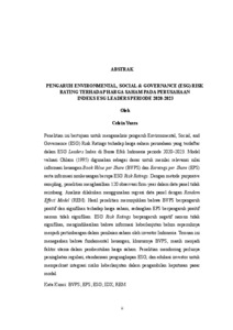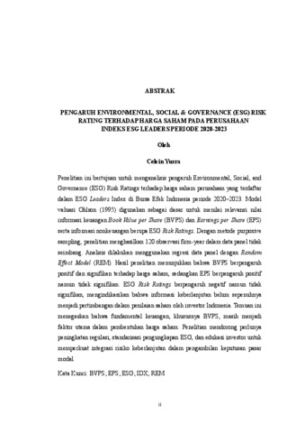 Celvin, Yusra (2025) PENGARUH ENVIRONMENTAL, SOCIAL & GOVERNANCE (ESG) RISK RATING TERHADAP HARGA SAHAM PADA PERUSAHAAN INDEKS ESG LEADERS PERIODE 2020-2023. EKONOMI DAN BISNIS, LAMPUNG.