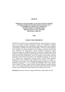 Marius, Theo Freidrich (2025) HUBUNGAN ANTARA KEKUATAN OTOT LENGAN, POWER TUNGKAI, KEKUATAN GENGGAMAN TANGAN, DAN FLEKSIBILITAS PINGGANG TERHADAP HASIL BANTINGAN TEKNIK YELKA QOLDAN PADA ATLET KURASH PROVINSI LAMPUNG. FAKULTAS KEGURUAN DAN ILMU PENDIDIKAN, UNIVERSITAS LAMPUNG.