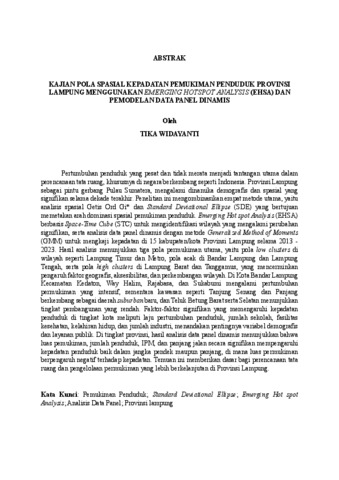Tika , Widayanti (2025) KAJIAN POLA SPASIAL KEPADATAN PEMUKIMAN PENDUDUK PROVINSI LAMPUNG MENGGUNAKAN EMERGING HOTSPOT ANALYSIS (EHSA) DAN PEMODELAN DATA PANEL DINAMIS. [Disertasi]