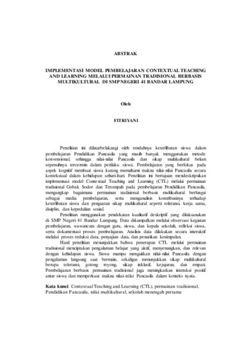 Fitri, Yani (2025) IMPLEMENTASI MODEL PEMBELAJARAN CONTEXTUAL TEACHING AND LEARNING MELALUI PERMAINAN TRADISIONAL BERBASIS MULTIKULTURAL DI SMP NEGERI 41 BANDAR LAMPUNG. Masters thesis, Universitas Lampung.