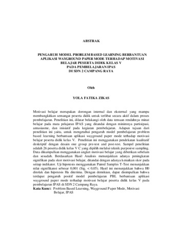 YOLA FATIKA , ZIKAS (2025) PENGARUH MODEL PROBLEM BASED LEARNING BERBANTUAN APLIKASI WAYGROUND PAPER MODE TERHADAP MOTIVASI BELAJAR PESERTA DIDIK KELAS V PADA PEMBELAJARAN IPAS DI SDN 2 CAMPANG RAYA. FAKULTAS KEGURUAN DAN ILMU PENDIDIKAN, UNIVERSITAS LAMPUNG.