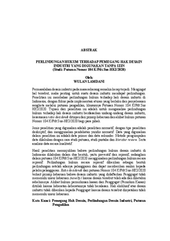 WULAN , LAMDANI (2025) PERLINDUNGAN HUKUM TERHADAP PEMEGANG HAK DESAIN INDUSTRI YANG DIGUNAKAN TANPA IZIN (Studi: Putusan Nomor 104 K/Pdt.Sus-HKI/2020). FAKULTAS HUKUM, UNIVERSITAS LAMPUNG.