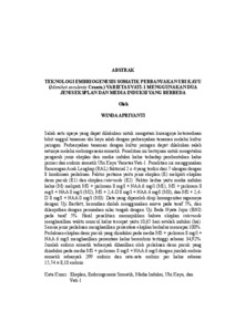 ABSTRAK Salah satu upaya yang dapat dilakukan untuk mengatasi kurangnya ketersediaan bibit unggul tanaman ubi kayu ialah dengan perbanyakan tanaman melalui kultur jaringan. Perbanyakan tanaman dengan kultur jaringan dapat dilakukan salah satunya melalui embriogenesis somatik. Penelitian ini bertujuan untuk mengetahui pengaruh jenis eksplan dan media induksi kalus terhadap pembentukan kalus primer dan embrio somatik Ubi Kayu Varietas Vati-1. Penelitian ini menggunakan Rancangan Acak Lengkap (RAL) faktorial 2 x 4 yang terdiri dari 7 ulangan dengan 8 kombinasi perlakuan. Faktor pertama yaitu jenis eksplan (E) meliputi eksplan daun pucuk (E1) dan eksplan internode (E2). Faktor kedua yaitu media induksi kalus (M) meliputi MS + picloram 8 mg/l + NAA 6 mg/l (M1), MS + picloram 8 mg/l + NAA 0 mg/l (M2), MS + 2,4-D 8 mg/l + NAA 6 mg/l (M3), dan MS + 2,4- D 8 mg/l + NAA 0 mg/l (M3). Data yang diperoleh diuji homogenitas ragamnya dengan Uji Bartlett, kemudian diolah menggunakan anova pada taraf 5%, dan dilanjutkan dengan pemisahan nilai tengah dengan Uji Beda Nyata Jujur (BNJ) pada taraf 5%. Hasil penelitian menunjukkan bahwa eksplan internode menghasilkan waktu muncul kalus tercepat yaitu 10,65 hari setelah induksi (hsi). Semua jenis perlakuan menghasilkan persentase eksplan berkalus mencapai 100%. Perlakuan eksplan daun pucuk yang diinduksi pada media MS + picloram 8 mg/l + NAA 6 mg/l menghasilkan persentase kalus berembrio tertinggi sebesar 34,92%. Jumlah embrio somatik terbanyak dihasilkan oleh perlakuan daun pucuk yang diinduksi pada media MS + picloram 8 mg/l + NAA 6 mg/l dengan jumlah embrio somatik sebanyak 299 embrio dan rata-rata embrio per kalus sebesar 15,74 ± 8,10 embrio. Kata Kunci: Eksplan, Embriogenesis Somatik, Media Induksi, Ubi Kayu, dan Vati-1 ABSTRACT One of the efforts that can be done to overcome the shortage of superior cassava seeds is to propagate plants through tissue culture. One way to propagate plants through tissue culture is through somatic embryogenesis. This study aims to determine the effect of explant types and callus induction media on the formation of primary callus and somatic embryos of Cassava Variety Vati-1. This study used a 2 x 4 factorial Completely Randomized Design (CRD) consisting of 7 replications with 8 treatment combinations. The first factor is the type of explant (E) including shoot leaf explant (E1) and internode explant (E2). The second factor is the callus induction media (M) including MS + picloram 8 mg/l + NAA 6 mg/l (M1), MS + picloram 8 mg/l + NAA 0 mg/l (M2), MS + 2,4-D 8 mg/l + NAA 6 mg/l (M3), and MS + 2,4-D 8 mg/l + NAA 0 mg/l (M4). The data obtained were tested for homogeneity of variance using the Bartlett test, then processed using Analysis of Variance at the 5% level, and continued with the separation of the middle values using the Honestly Significant Difference (HSD) test at the 5% level. The results showed that internode explant produced the fastest callus emergence time at 10.65 days after induction (dai). All treatments produced percentage of callus forming at 100%. The treatment of shoot leaf explant induced in MS + 8 mg/l picloram + 6 mg/l NAA media produced the highest percentage callus with embryo at 34.92%. The largest number of somatic embryos was produced by the treatment of shoot leaf induced in MS + 8 mg/l picloram + 6 mg/l NAA media with a total of 299 somatic embryos and an average of 15,74 embryos per callus. Keywords: Cassava, Explants, Induction Media, Somatic Embryogenesis, and Vati-1