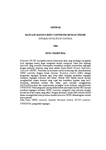 Dina, Chairunisa (2025) RANCANG BANGUN SEPIC CONVERTER DENGAN TEKNIK DYNAMIC EVOLUTION CONTROL. FAKULTAS TEKNIK, UNIVERSITAS LAMPUNG.