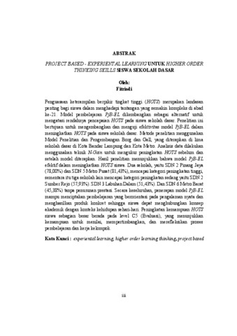 Fitriadi, - (0017) PROJECT BASED - EXPERIENTAL LEARNING UNTUK HIGHER ORDER THINKING SKILLS SISWA SEKOLAH DASAR. [Disertasi]