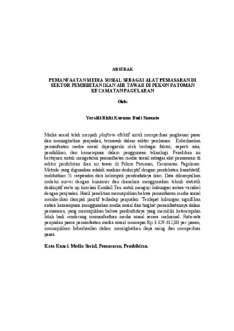Yeraldi Rizki Kusuma Budi , Susanto (2025) PEMANFAATAN MEDIA SOSIAL SEBAGAI ALAT PEMASARAN DI SEKTOR PEMBIBITAN IKAN AIR TAWAR DI PEKON PATOMAN KECAMATAN PAGELARAN. FAKULTAS PERTANIAN, UNIVERSITAS LAMPUNG.