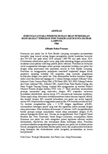 Fenomena juru parkir liar di Kota Bandar Lampung merupakan permasalahan kompleks yang muncul seiring dengan peningkatan jumlah kendaraan bermotor dari 945.620 unit pada tahun 2020 menjadi 1.009.790 unit pada tahun 2024. Keterbatasan infrastruktur parkir resmi yang tidak sebanding dengan pertumbuhan kendaraan menciptakan celah bagi praktik parkir informal. Penelitian ini bertujuan untuk menganalisis hubungan antara persepsi masyarakat terhadap juru parkir liar dengan sikap penerimaan atau penolakan mereka di Kota Bandar Lampung. Penelitian ini menggunakan pendekatan kuantitatif eksplanatif dengan teknik purposive sampling terhadap 100 responden yang memiliki pengalaman berinteraksi dengan juru parkir liar. Data dikumpulkan melalui kuesioner dengan skala Likert dan observasi lapangan di 11 lokasi strategis meliputi Alfamart Unila, Indomart Unila, Cinema Plaza Mall, ATM Bank (BRI, BSI, BNI) Cabang Kedaton dan Unila, Indomart UBL, Alfamart UBL, Apotek Rosa, Pasar Bambu Kuning, dan Pasar Tengah Tanjung Karang. Analisis data menggunakan uji korelasi Product Moment Pearson dengan bantuan SPSS versi 27. Hasil penelitian menunjukkan persepsi masyarakat yang ambivalen, dengan 49% responden menerima kemudahan aksesibilitas, namun hanya 37% mempercayai keamanan kendaraan. Dalam aspek sikap, ditemukan ketidakkonsistenan antara dimensi kognitif, afektif, dan konatif, dimana 46% menolak keberadaan juru parkir liar secara kognitif, namun 43% tetap bersedia menggunakan jasanya dan 42% bersedia membayar tarif. Uji korelasi menghasilkan nilai r = 0,739 dengan signifikansi p<0,001, menunjukkan hubungan positif yang kuat dan signifikan antara persepsi dengan sikap penerimaan. Nilai koefisien determinasi (r²) sebesar 54,6% mengindikasikan bahwa persepsi mampu menjelaskan variasi sikap masyarakat, dengan 45,4% sisanya dipengaruhi faktor lain. Temuan ini mengonfirmasi Teori Kognitif Sosial Bandura dan Teori Konstruksi Sosial Berger-Luckmann, menunjukkan bahwa fenomena juru parkir liar telah mengalami proses legitimasi informal melalui habitualisasi, objektivasi, dan internalisasi dalam kehidupan urban. Penelitian merekomendasikan pengembangan sistem integrasi juru parkir liar ke dalam sistem formal, peningkatan penyediaan fasilitas parkir resmi, dan implementasi tarif parkir yang transparan dan terstandarisasi untuk mengatasi permasalahan ini secara komprehensif. Kata Kunci: Persepsi Masyarakat, Juru Parkir Liar, Sikap Penerimaan. The phenomenon of illegal parking attendants in Bandar Lampung City has become a complex issue following the increase in motorized vehicles from 945,620 units in 2020 to 1,009,790 units in 2024. The limited availability of official parking infrastructure, which does not match the rapid growth in the number of vehicles, creates a gap that enables the emergence of informal parking practices. This study aims to analyze the relationship between public perception of illegal parking attendants and their acceptance or rejection attitudes in Bandar Lampung City. This research employs a quantitative explanatory approach with purposive sampling involving 100 respondents who have experience interacting with illegal parking attendants. Data were collected through Likert-scale questionnaires and field observations conducted at 11 strategic locations, including Alfamart Unila, Indomart Unila, Cinema Plaza Mall, bank ATM areas (BRI, BSI, BNI) around Kedaton and Unila, Indomart UBL, Alfamart UBL, Rosa Pharmacy, Bambu Kuning Market, and Pasar Tengah Tanjung Karang. Data were analyzed using Pearson Product Moment correlation with SPSS version 27. The results show ambivalent public perceptions: 49% of respondents acknowledged the convenience of access provided, yet only 37% trusted the security of their vehicles. Regarding attitudes, inconsistency was found across cognitive, affective, and conative dimensions, where 46% cognitively rejected the presence of illegal parking attendants, yet 43% were still willing to use their services and 42% were willing to pay the parking fee. The correlation test yielded r = 0.739 with p < 0.001, indicating a strong and significant positive relationship between perception and acceptance attitude. The coefficient of determination (r²) of 54.6% indicates that perception explains the variation in public attitude, while the remaining 45.4% is influenced by other factors. These findings confirm Bandura’s Social Cognitive Theory and Berger- Luckmann’s Social Construction Theory, demonstrating that the phenomenon of illegal parking attendants has undergone an informal legitimization process through habitualization, objectivation, and internalization in urban life. This study recommends integrating informal parking attendants into the formal system, expanding official parking facilities, and implementing transparent and standardized parking tariffs as comprehensive solutions to address the issue. Keywords: Public Perception, Illegal Parking Attendants, Acceptance Attitude.
