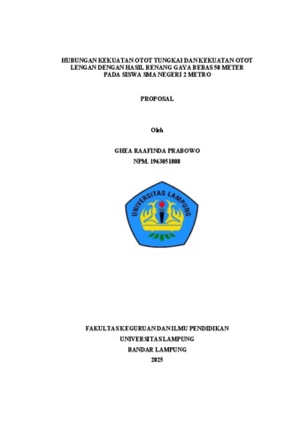 Ghea Raafinda , Prabowo (2025) HUBUNGAN KEKUATAN OTOT TUNGKAI DAN KEKUATAN OTOT LENGAN DENGAN HASIL RENANG GAYA BEBAS 50 METER PADA SISWA SMA NEGERI 2 METRO. Keguruan Dan Ilmu Pendidikan, Universitas Lampung.