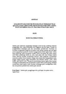 Industri gula Indonesia menghadapi tantangan serius berupa rendahnya efisiensi penggilingan tebu, yang ditunjukkan oleh tingginya nilai pol bagas. Kondisi ini mengakibatkan kehilangan gula dan menurunkan produktivitas. Penelitian ini bertujuan menganalisis pengaruh kecepatan motor giling terhadap nilai pol bagas serta mengoptimasi parameter tersebut menggunakan metode logika fuzzy. Sistem fuzzy dirancang untuk memproses variabel mesin (kecepatan dan beban motor) serta faktor pendukung (kadar air, suhu, masa pakai, dan masa tebang) melalui aturan inferensi berbasis membership function. Hasil pengujian menunjukkan mayoritas prediksi fuzzy konsisten dengan data aktual divisi pengendalian mutu, dengan tingkat akurasi tinggi ditunjukkan oleh RRMSE sebesar 7,84%, MAE 0,0603, dan MAPE 3,34%. Temuan ini membuktikan bahwa logika fuzzy mampu menangani ketidakpastian dan kompleksitas variabel dalam proses giling, sekaligus memberikan solusi praktis untuk menekan kehilangan gula, meningkatkan mutu, dan memperbaiki produktivitas industri gula nasional. Kata Kunci: Industri gula; penggilingan tebu; pol bagas; kecepatan motor; logika fuzzy The Indonesian sugar industry faces a major challenge of low milling efficiency, as indicated by the high pol value in bagasse. This condition leads to significant sugar losses and reduced productivity. This study aims to analyze the effect of mill motor speed on bagasse pol value and optimize this parameter using a fuzzy logic approach. The fuzzy system was designed to process machine variables (motor speed and load) and supporting factors (moisture content, water temperature, machine lifetime, and harvesting period) through rule-based inference with membership functions. Experimental results showed that most fuzzy predictions were consistent with the actual data from the quality control division, with high accuracy indicated by RRMSE of 7.84%, MAE of 0.0603, and MAPE of 3.34%. These findings confirm that fuzzy logic can effectively handle uncertainty and complex variable interactions in the milling process, while providing a practical solution to reduce sugar loss, improve quality, and enhance the productivity of the national sugar industry. Keywords: Sugar industry; sugarcane milling; bagasse pol; motor speed; fuzzy logic