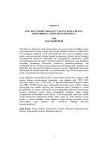INAS , HARDIANTI (2025) ANALISIS YURIDIS TERHADAP WACANA SISTEM PEMILU PROPORSIONAL TERTUTUP DI INDONESIA. Masters thesis, UNIVERSITAS LAMPUNG.