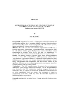 DIO, PRATAMA (2025) UJI AKTIVITAS ANTIBAKTERI EKSTRAK ETANOL 96%DAUN MENTIMUN (Cucumis sativus L.) TERHADAP PERTUMBUHAN Staphylococcus aureus. FAKULTAS KEDOKTERAN, UNIVERSITAS LAMPUNG.