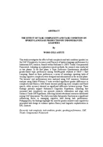 WORO ZULI, ASTUTI (2025) THE EFFECT OF TASK COMPLEXITY AND TASK CONDITION ON SPOKEN LANGUAGE PRODUCTION BY INDONESIAN EFL LEARNERS. Masters thesis, UNIVERSITY OF LAMPUNG.