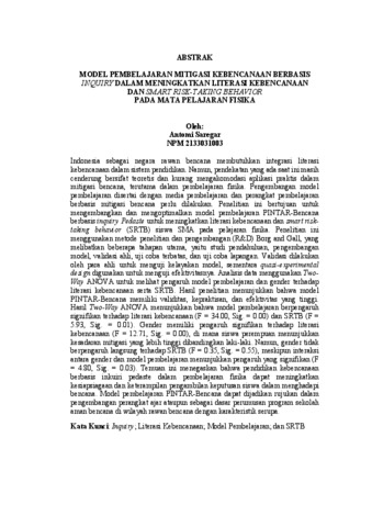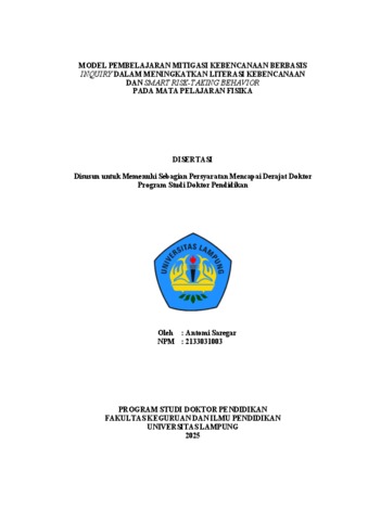 Antomi , Saregar (2026) MODEL PEMBELAJARAN MITIGASI KEBENCANAAN BERBASIS INQUIRY DALAM MENINGKATKAN LITERASI KEBENCANAAN DAN SMART RISK-TAKING BEHAVIOR PADA MATA PELAJARAN FISIKA. [Disertasi]