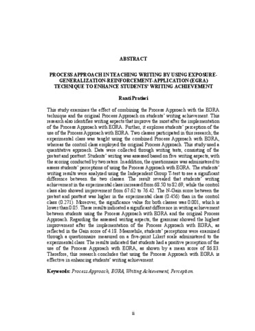 Ranti Pratiwi, . (2026) PROCESS APPROACH IN TEACHING WRITING BY USING EXPOSURE-GENERALIZATION-REINFORCEMENT-APPLICATION (EGRA) TECHNIQUE TO ENHANCE STUDENTS’ WRITING ACHIEVEMENT. Masters thesis, UNIVERSITAS LAMPUNG.