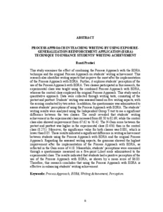 This study examines the effect of combining the Process Approach with the EGRA technique and the original Process Approach on students’ writing achievement. This research also identifies writing aspects that improve the most after the implementation of the Process Approach with EGRA. Further, it explores students’ perception of the use of the Process Approach with EGRA. Two classes participated in this research; the experimental class was taught using the combined Process Approach with EGRA, whereas the control class employed the original Process Approach. This study used a quantitative approach. Data were collected through writing tests, consisting of the pretest and posttest. Students’ writing was assessed based on five writing aspects, with the scoring conducted by two raters. In addition, the questionnaire was administered to assess students’ perceptions of using the Process Approach with EGRA. The students’ writing results were analyzed using the Independent Group T-test to see a significant difference between the two classes. The result revealed that students’ writing achievement in the experimental class increased from 68.50 to 82.69, while the control class also showed improvement from 67.62 to 76.42. The N-Gain score between the pretest and posttest was higher in the experimental class (0.456) than in the control class (0.271). Moreover, the significance value for both classes was 0.001, which is lower than 0.05. These results indicated a significant difference in writing achievement between students using the Process Approach with EGRA and the original Process Approach. Regarding the assessed writing aspects, the grammar showed the highest improvement after the implementation of the Process Approach with EGRA, as reflected in the Gain score of 4.18. Meanwhile, students’ perceptions were examined through a questionnaire measured on a five-point Likert scale administered to the experimental class. The results indicated that students had a positive perception of the use of the Process Approach with EGRA, as shown by a mean score of 86.83. Therefore, this research concludes that using the Process Approach with EGRA is effective in enhancing students’ writing achievement. Keywords: Process Approach, EGRA, Writing Achievement, Perception.
