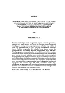 MUHAMMAD , GIAS (2026) PENGARUH CORPORATE GOVERNANCE, FINANCIAL SLACK, HUMAN RESOURCE SLACK, RETURN ON ASSETS, DAN NON-PERFORMING LOAN TERHADAP GREEN BANKING DISCLOSURE (STUDI PADA PERUSAHAAN PERBANKAN YANG TERDAFTAR DI BURSA EFEK INDONESIA PERIODE 2022-2024). FAKULTAS ILMU SOSIAL DAN ILMU POLITIK, UNIVERSITAS LAMPUNG.