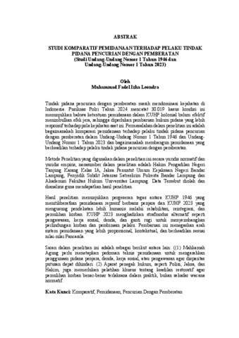 MUHAMMAD , FADEL IZHA LEONDRA (2026) STUDI KOMPARATIF PEMIDANAAN TERHADAP PELAKU TINDAK PIDANA PENCURIAN DENGAN PEMBERATAN (Studi Undang-Undang Nomor 1 Tahun 1946 dan Undang-Undang Nomor 1 Tahun 2023). Masters thesis, UNIVERSITAS LAMPUNG.