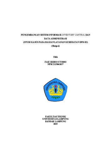 FAIZ, RIDHO UTOMO (2025) PENGEMBANGAN SISTEM INFORMASI INVENTORY CONTROL DAN DATA ADMINISTRASI STUDI KASUS PADA BAGIAN LAYANAN KESEHATAN DPR-RI. FAKULTAS TEKNIK, UNIVERSITAS LAMPUNG.